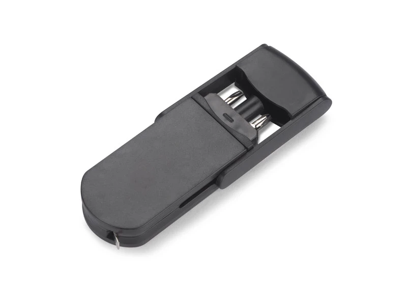 Dwa wymienne bity: płaski i krzyżakowy, miara o długości 1 metra.